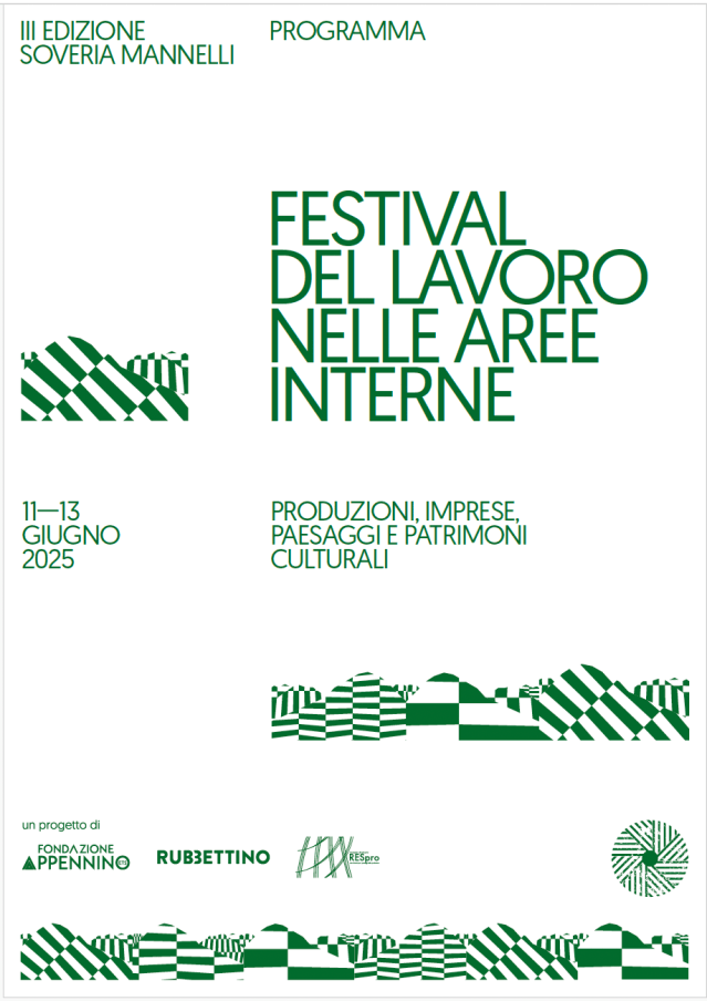 Dall’ 11 al 13 giugno 2025 si svolgerà, a Soveria Mannelli la terza edizione del Festival del lavoro nelle aree interne un appuntamento, organizzato in collaborazione con la Fondazione Appennino ETS e la casa editrice Rubbettino.